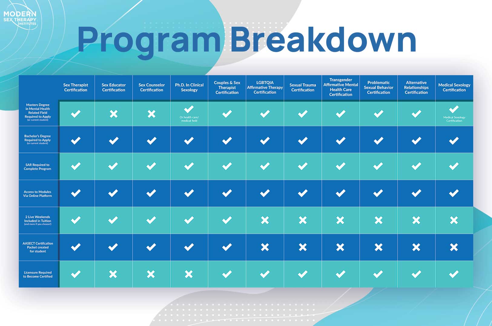 When you complete MSTI’s Ph.D. in Clinical Sexology program, you will also have EVERYTHING that you need for AASECT certification! No more education, no more supervision, no more SAR, no more tears!